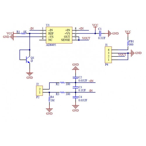 AD5495 stiprintuvas K tipo termoporai iš „Analog Devices“, veikimo principas yra panašus į analoginius temperatūros jutiklius, tokius kaip LM35, modulio išvestis išleidžia įtampą, proporcingą temperatūrai, skiriant 5 mV / °C.