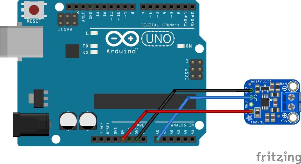 float Vout = raw * (5.0 / 1024.0);        // apskaičiuojame įtampą AD8495 išėjime