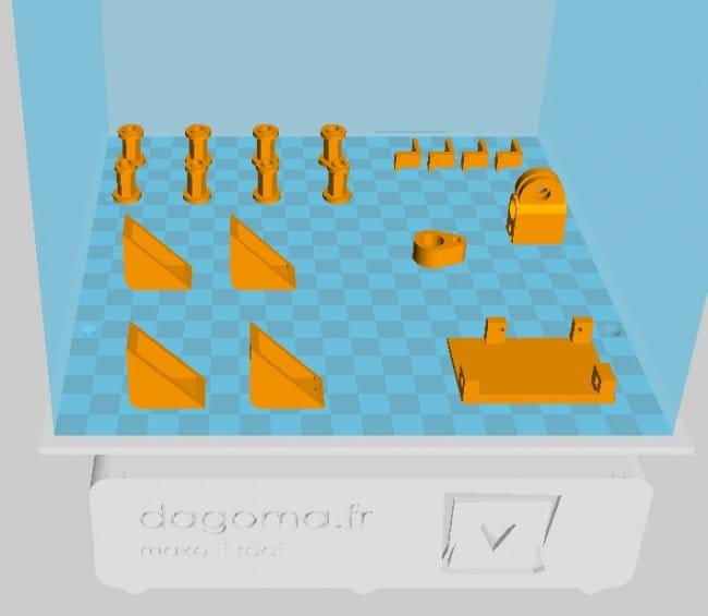 Все конструктивные элементы были спроектированы с использованием открытого программного обеспечения Open Scad. Для печати деталей понадобится 9,55 м PLA (29 граммов). Печать в быстром режиме занимает около 3 часов.