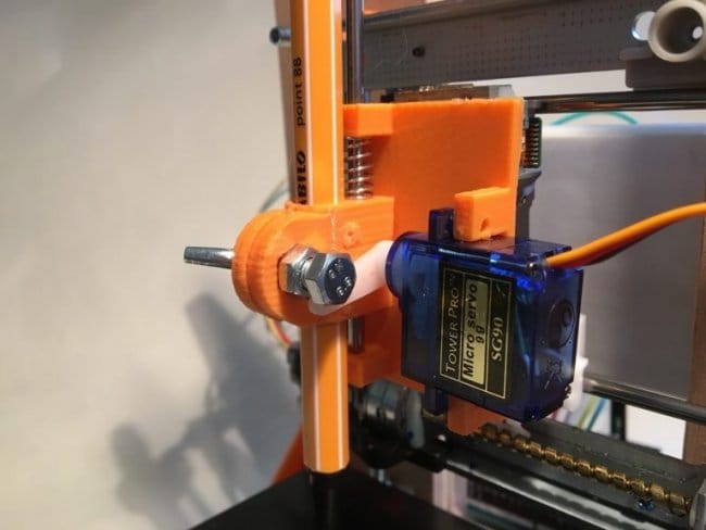 Предупреждение: нельзя использовать серводвигатель, для нажатия карандаш на лист бумаги. Сила, оказываемая серводвигателем, может быть слишком сильной и препятствовать перемещению оси X. Карандаш прижимается к листу только благодаря пружине.