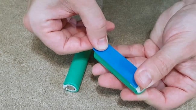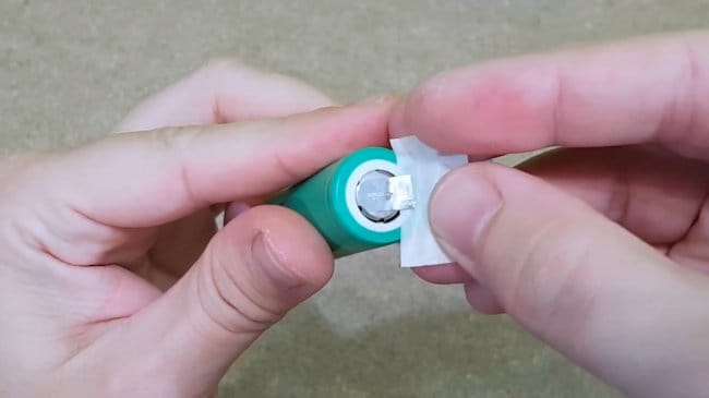 Еще один кусочек изоляционной ленты приклеивается на корпус одной из батарей — это создаст еще один слой в месте соединения корпусов. Таким образом уменьшается риск короткого замыкания.