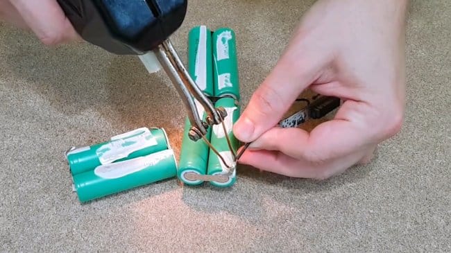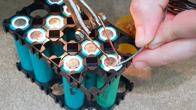 Плюс и минус разных батареек спаиваются между собой, образуя среднюю точку.