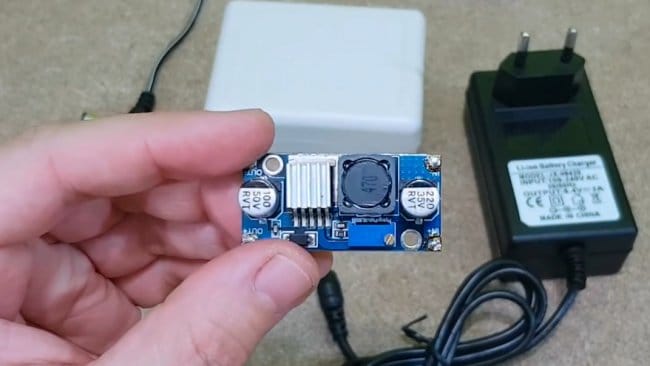 К сожалению, использовать родной блок питания на 12В от роутера для питания бесперебойника не получится. Ему требуется напряжение 8,4В. Для этого нужно заменить его на зарядное устройство на 8,4В и 2А, либо использовать блок питания от роутера с вот такой понижающей платой.