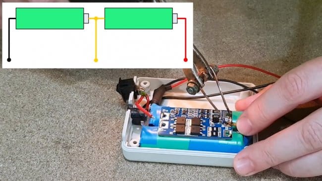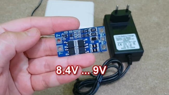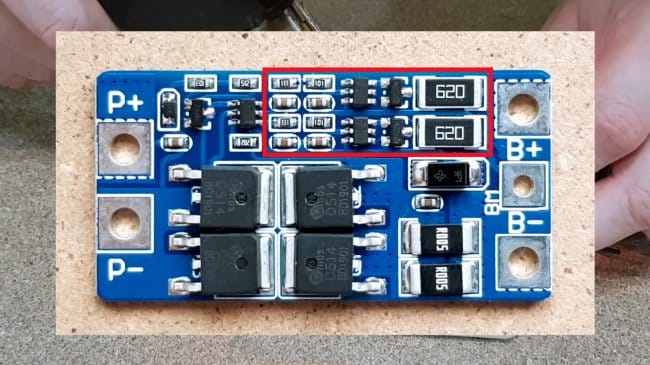 Чтобы правильно управлять зарядом каждой из батареек, нужно установить плату защиты и балансировки (BMS). Эта разновидность плат предназначена для сборок 2S.