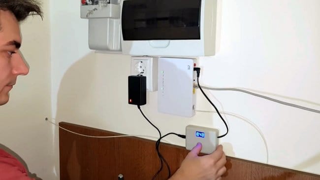 Теперь можно заменить штатный блок питания роутера на новый бесперебойник с зарядным, и выключить свет для проверки.