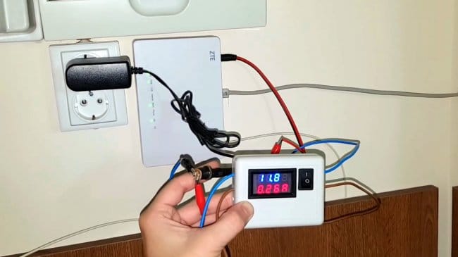 Остается проверить потребление роутера, подключив самодельный прибор последовательно.